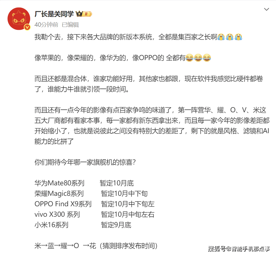 重点是真正的重头戏,才刚刚开始,原因是五大新机的发布时间被确认了,甚至系统、硬件参数,也都悬念不大了。