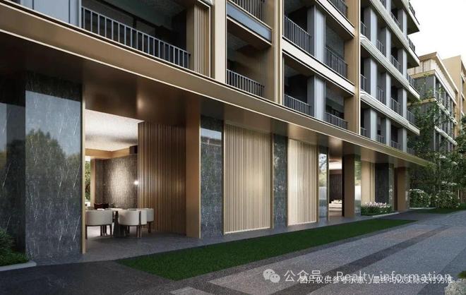 超百米的城市界面,酒店式落客归家大堂,定制白色肌理感奢石景墙展,打造完整的归家体验。